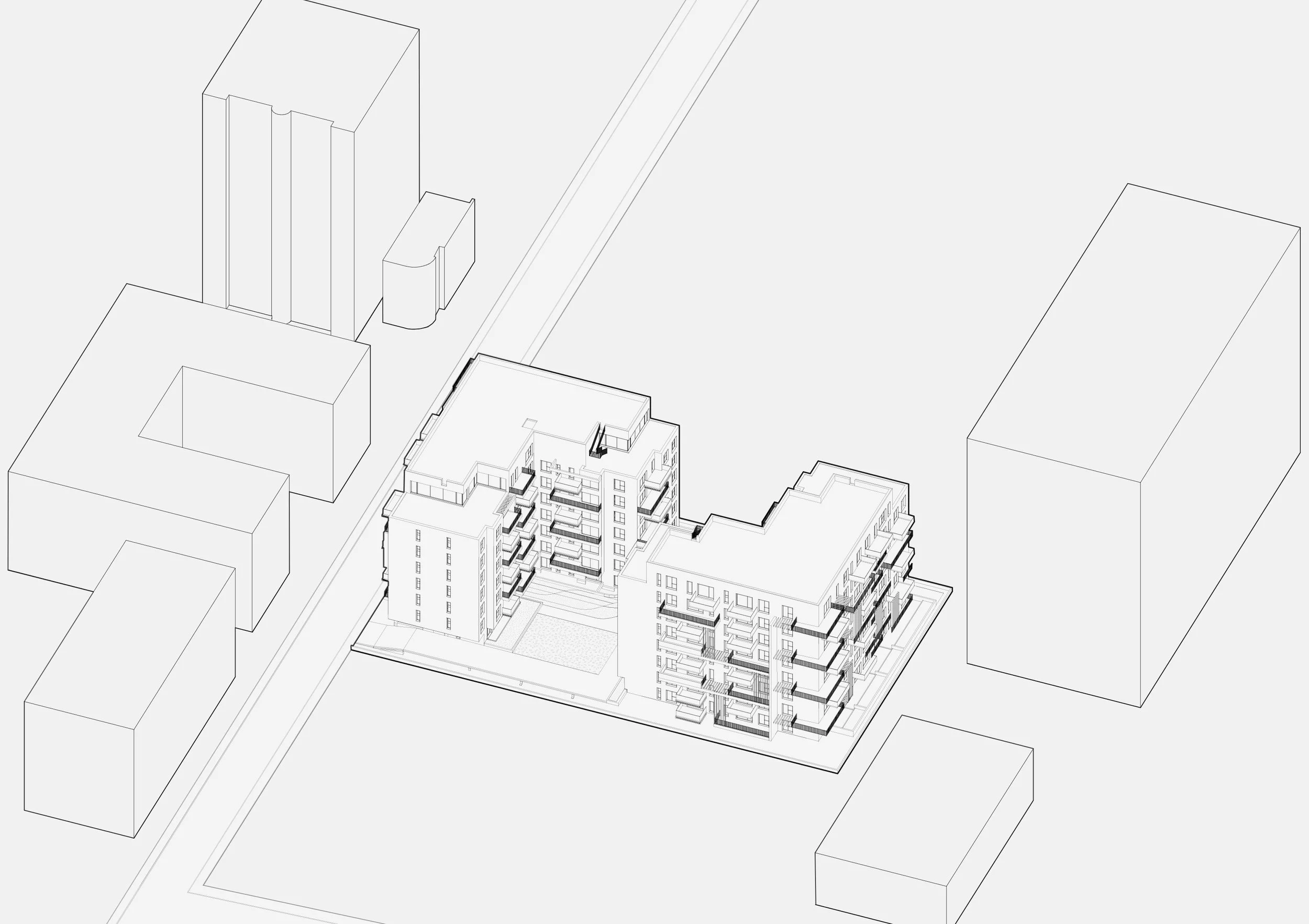 The creative process was based on the use of minimal yet sophisticated lines and shapes, aiming to produce a contemporary residential project that addresses the needs of each type of future resident. The palette of colours and materials selected contributes to the creation of a complex building that combines a new perspective for housing in the area but can also be easily assimilated by its surroundings.